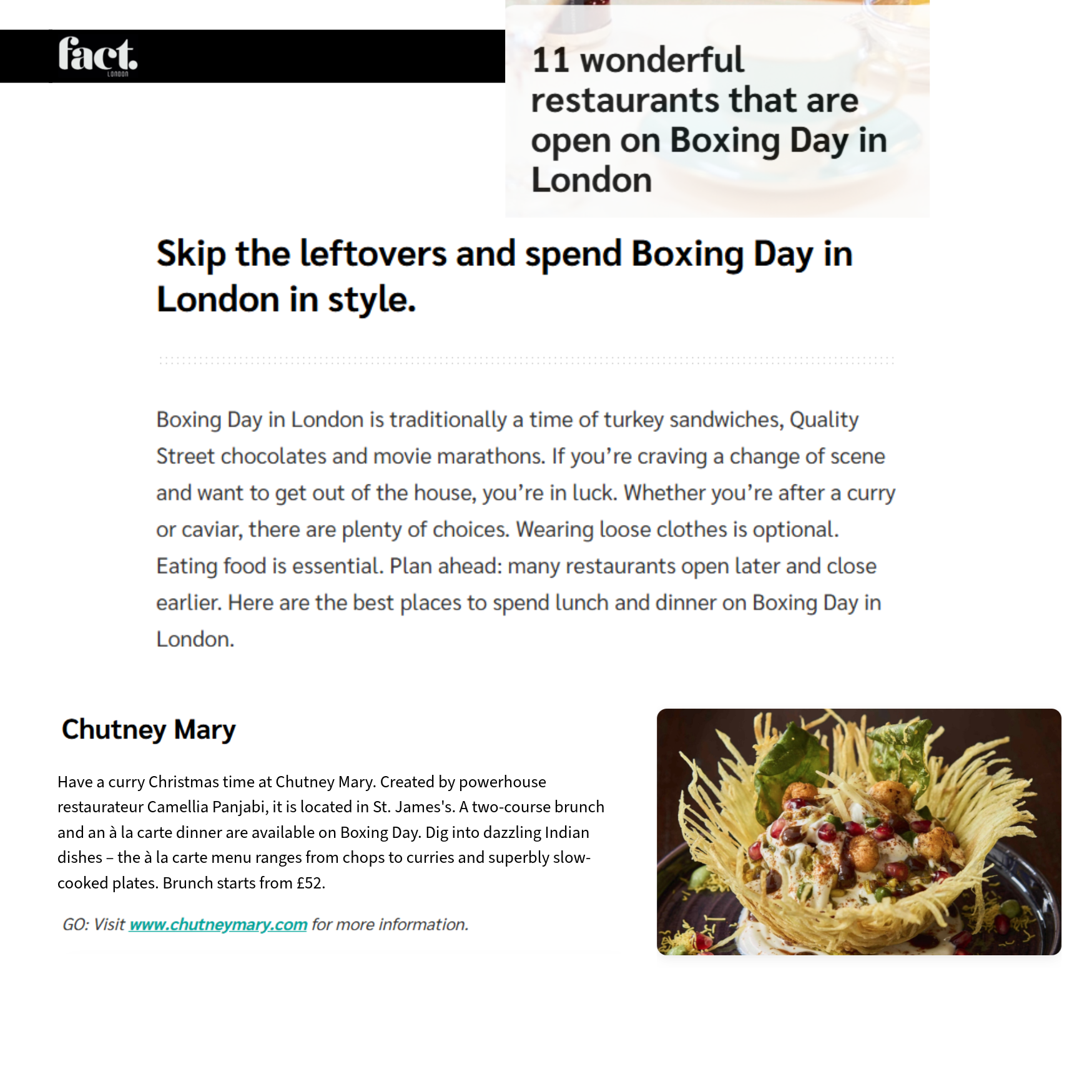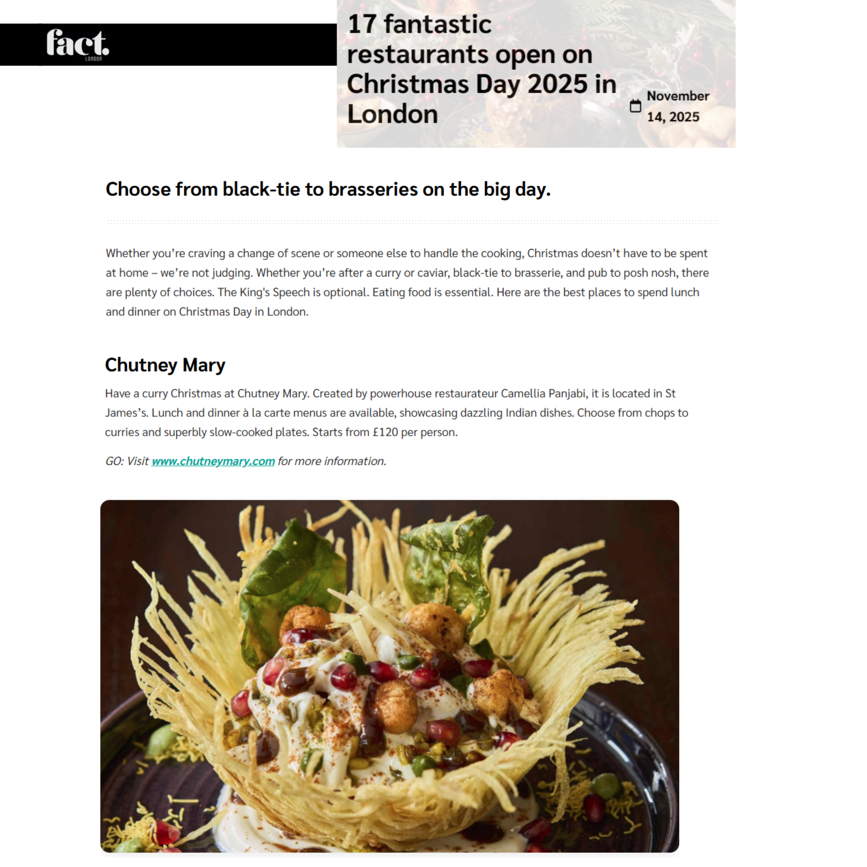 Simon Numphud, Managing Director of the AA Media Group, explained: “Chutney Mary is one of London’s finest restaurants and a class act"