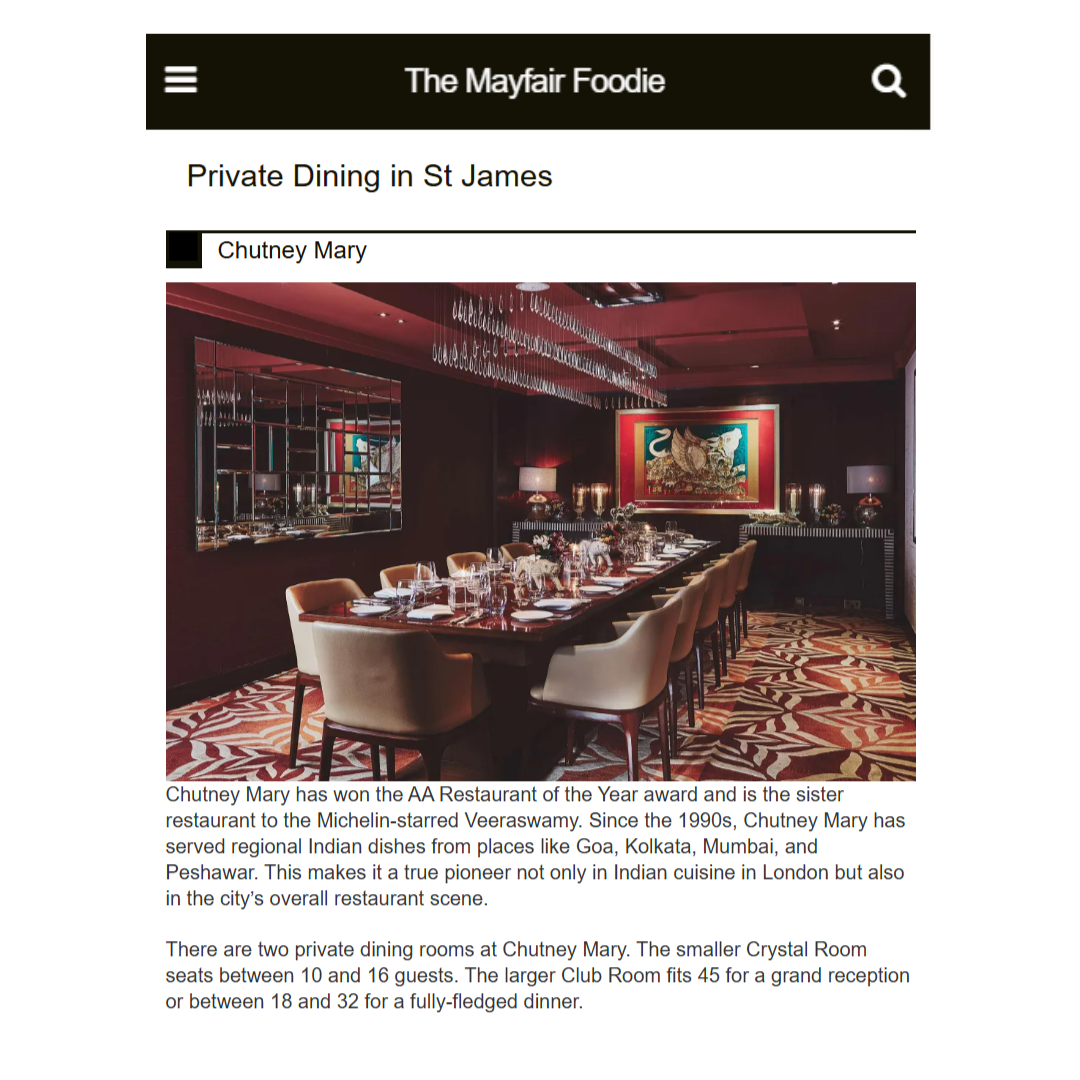 Chutney Mary - The Mayfair Foodie - Private Dining