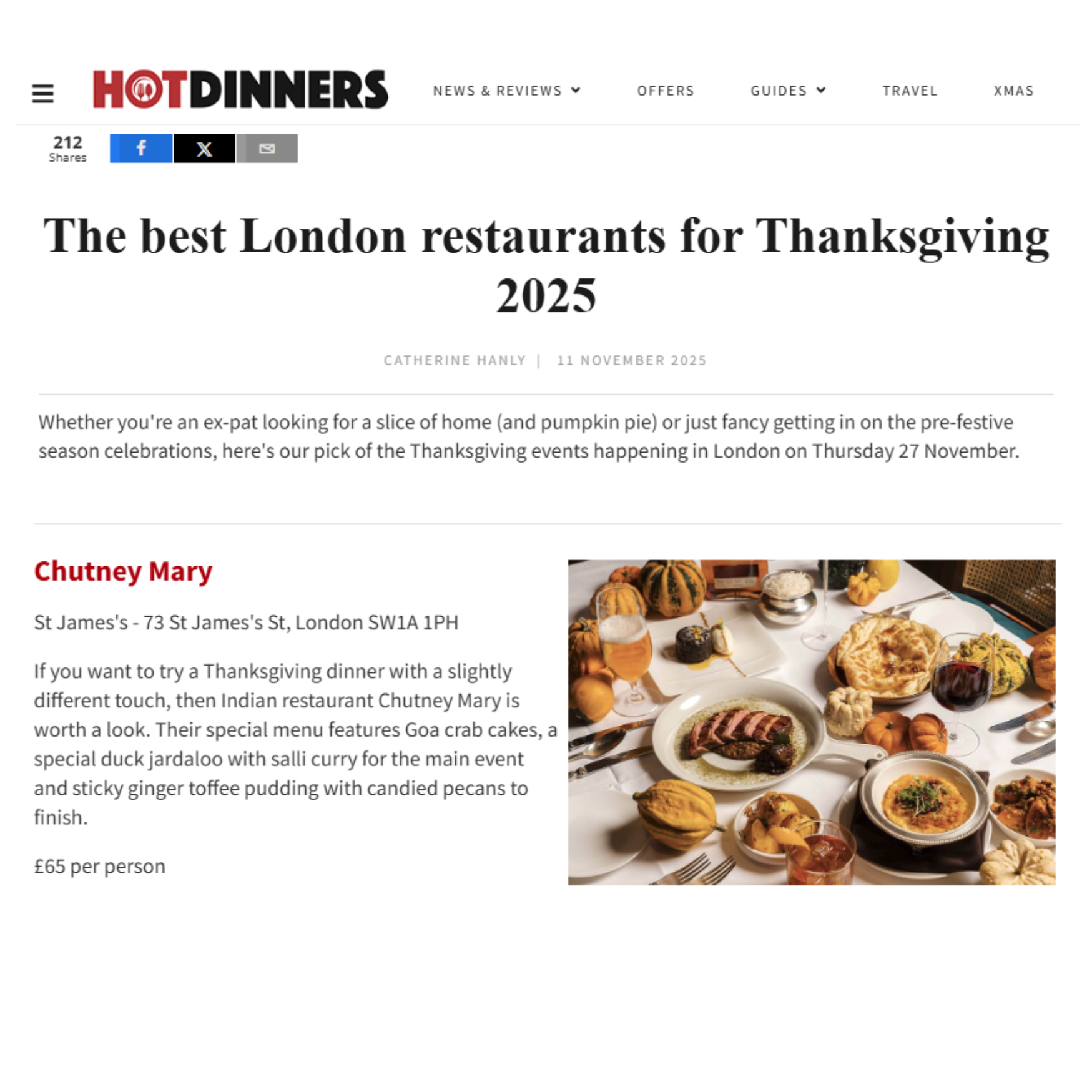 Chutney Mary - Luxuriate Life - Thanksgiving Feasts in London