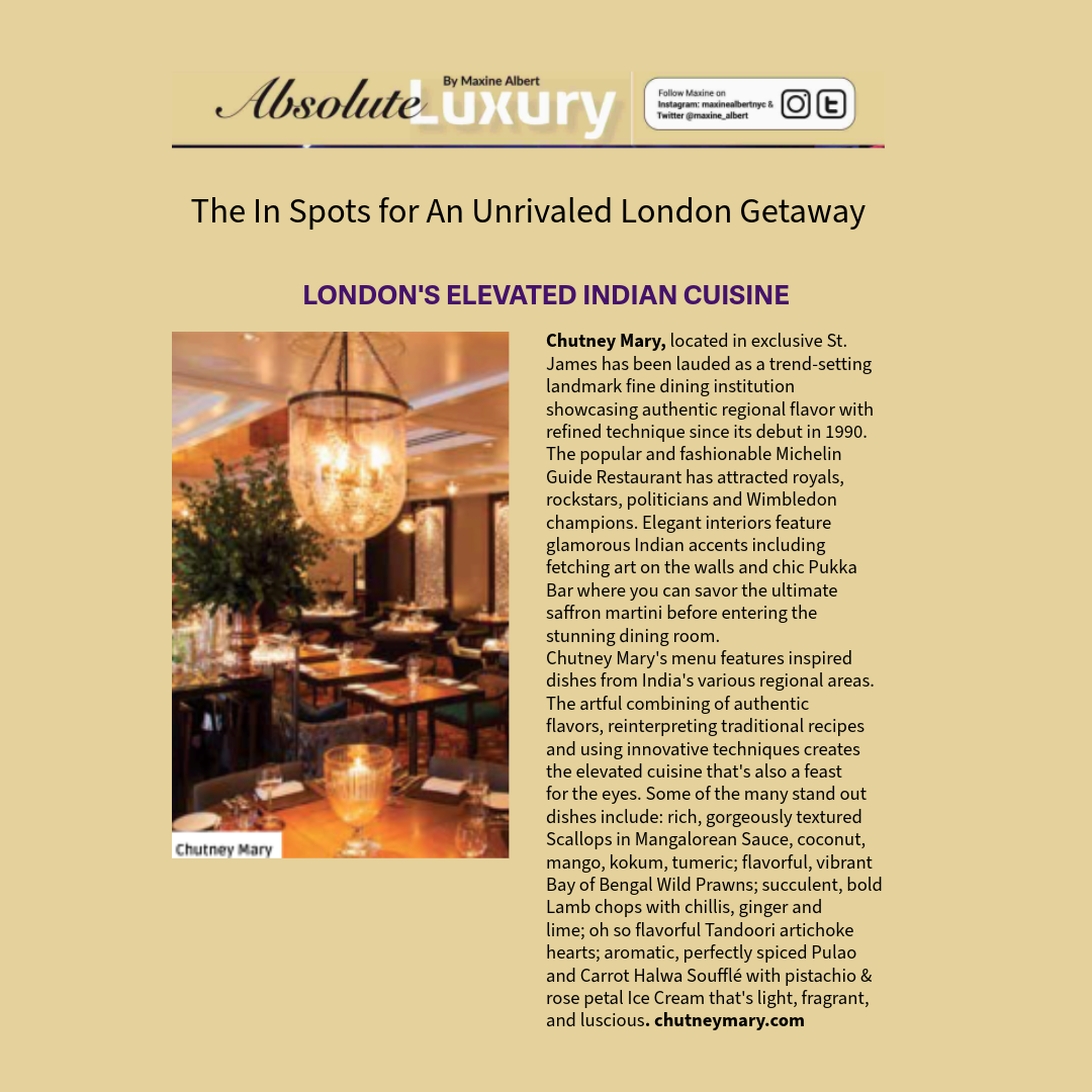 “Chutney Mary is sure to become a mainstay for all who visit.”