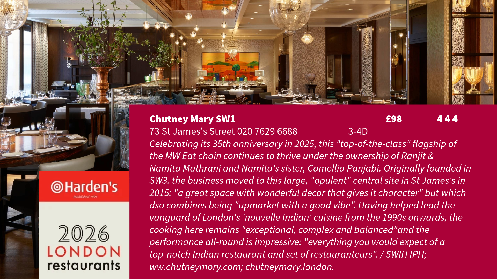 Chutney Mary - Harden's 2026 London Restaurants Guide
